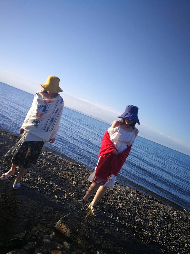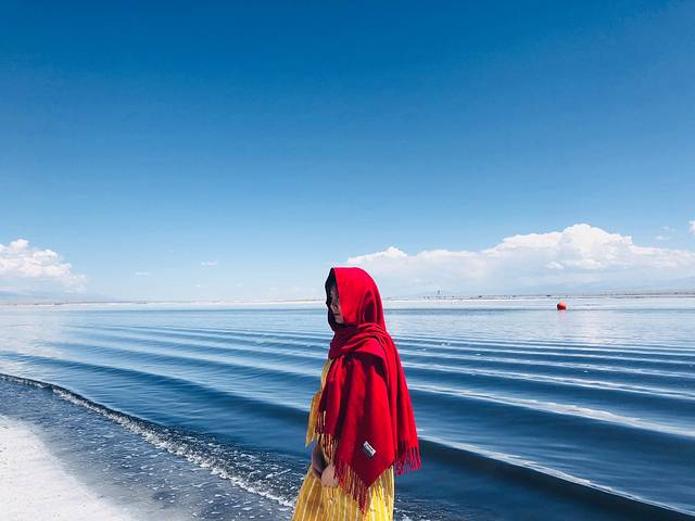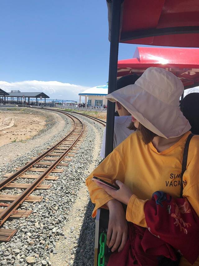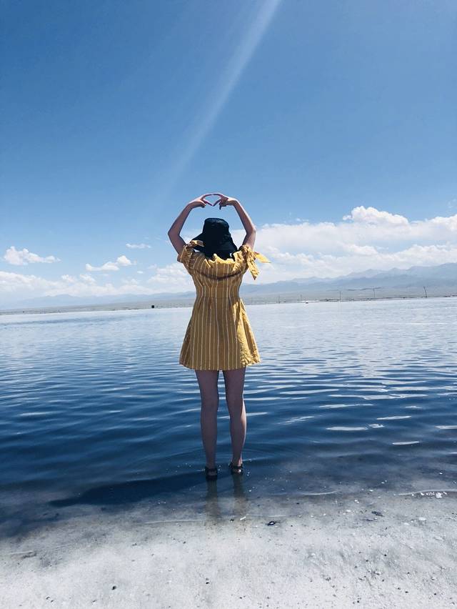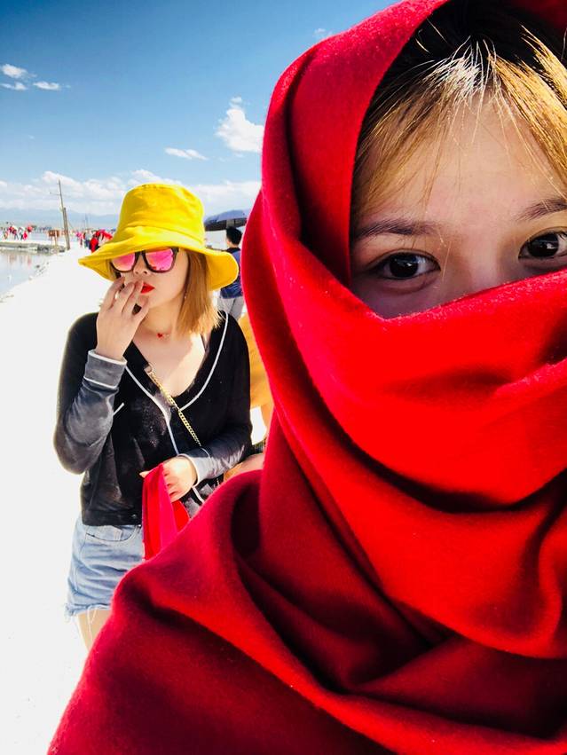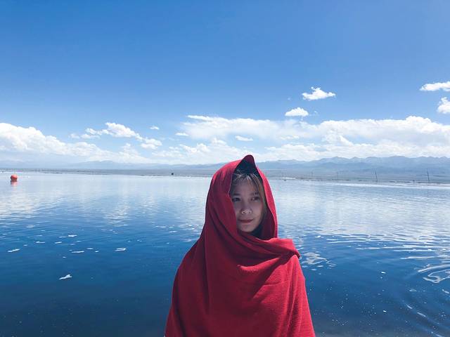 一大早披个围巾去看日出,还好,没有让我失望,还不错,太阳公公没偷懒。看完后回房间又睡了一觉,醒来快大中午了,外边热死,收拾一下出发去茶卡盐湖,那个传说中的天空之镜,到的时候正好是两点多很热的时候,我们买了门票和小火车票,进去直奔小火车,坐到了终点湖中心什么站,一路拍拍拍,下了小火车直奔湖中心,我穿的凉鞋下去试了下水还行,盐很粗很大颗粒,硌脚,租个鞋套我们仨个一起下水想去中间那个小岛上拍照,结果越走越深,水越来越黑,有的地方还是软的,有溶洞,快到那个小岛的时候,因为我在前边走我走的快,他们两个在后边拉着一起走,就听见啊一声,我扭头一看瑶瑶摔里了,因为他俩手拉手所以薇薇也倒进去了,然后好不容易瑶瑶爬起来,薇薇起不来下意识乱抓又把刚起来的瑶瑶给拽进去了,我想回去拉他俩,但我一转身差点踩到溶洞陷下去,我不敢动,这时候她俩已经都起来了,但是包都进水了,里边手机什么的全部都湿了,我们仨赶紧走到小岛上,然后我发现瑶瑶腿有一点伤,薇薇的很严重一直在流血,因为下边是粗盐,蹭一下皮好几个口子,薇薇的大腿后边和侧边都是血,还在往外流,然后瑶瑶我们就随便拍了几张后赶紧往回返,我拉着他俩安全返回,他俩手机一个报废一个听筒和指纹不能用了,还带着一腿伤,歪加炎热的大太阳,又累又热还烤的慌,我们直接返回车上,盐湖里泡过的衣服一干硬邦邦的都能定型,还特别难受,别人拍的水很浅的地方我们也找不到在哪,他们心情也不好,我们就直接出了景区,洗了脚直接开车返回西宁,晚上住西宁市区
