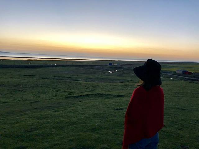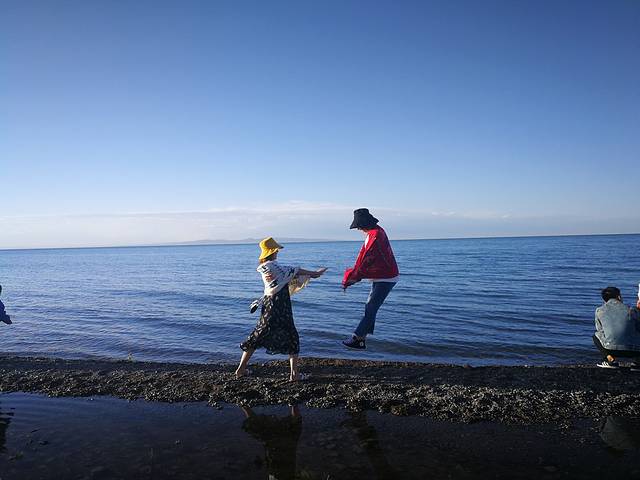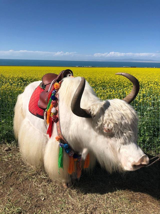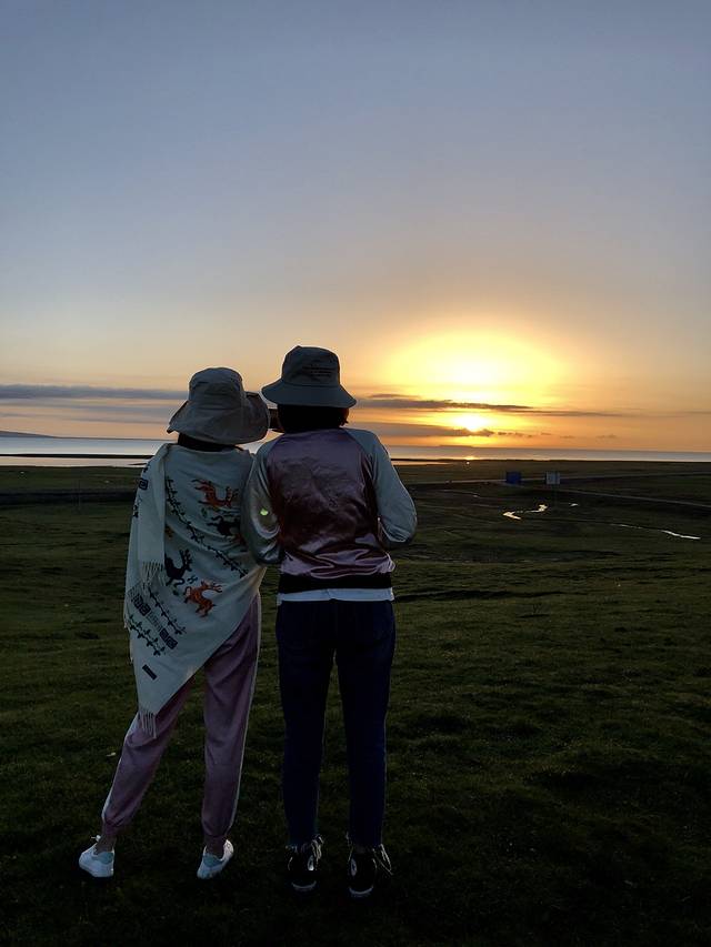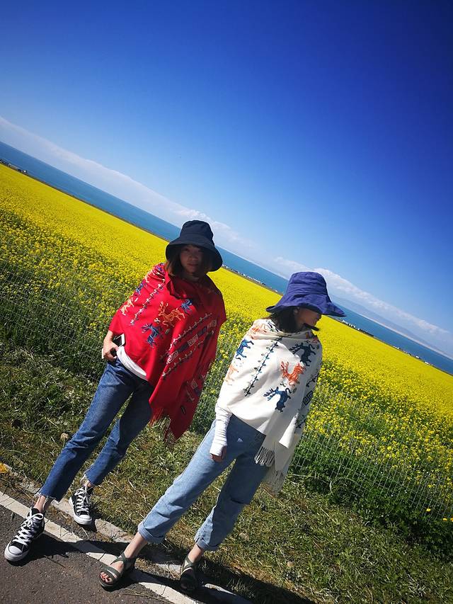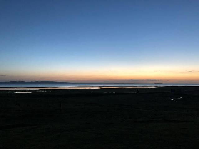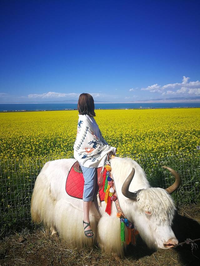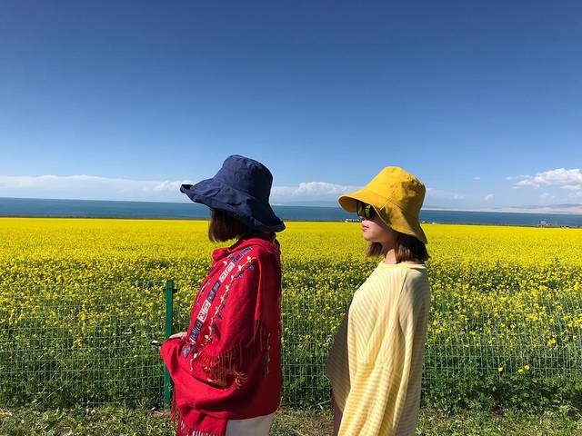 因为之前了解的不够,以为跟洱海的一样是环着湖边的那种公路,就随便用导航导了一个青海湖,到了之后才发现导航直接给导到了青海湖二郎剑景区,想到青海湖边还要买票,票价一百块,然后我们仨就很懵,找酒店看了也都是在景区内,我们很郁闷啊,正好旁边有个小哥跟我们讲,如果你们只是进去看一下那没必要买门票了,旁边有小路可以开车进去,是那些当地人把守的路口,进去一个人五到十块,建议我们到黑马河那边入住,可以看日落,我们仨听完果断赶往黑马河,一路上好多好多的油菜花,特别漂亮,还有牦牛,可以骑着拍照,风景很美,唯一郁闷的是一路限速,一会60,一会40,一会30,开的巨累^_^,我找了家露营大本营这种住宿的地方直接导了过去,我打电话再三沟通想住帐篷,老板人不错,说给我们搭,我沉浸在即将要睡帐篷,有星空有草地的幻想中。途中遇到一个很靠近湖边的地方,停了车走下去随便看下,结果就是这随便一看,拍照片的时候却拍出了超满意的照片,发朋友圈的时候好多朋友问是哪?很美。等我们到住宿的地方的时候,先看见的是一个农家院??,不是什么什么大本营吗?怎么是农家院啊??院中间还矗立着一个像小型蒙古包的帐篷??我想象中不是这样啊,是大草地在湖边有帐篷有星空啊!怎么会在院子里,离湖边还十万八千里,老板说现在他们不让搭帐篷了,就算搭了也只能在院子里,并且第二天一早就要拆掉,唉,算了!不住帐篷了,还是客房吧,放完东西后我们三个巨饿问老板有没有吃的,老板给我推荐他们自己做的火锅,叫青海土火锅,我们就决定尝尝,真的挺好吃的,我们三个女孩子把一锅吃完,还在不停的说真好吃,强烈推荐土火锅,强烈推荐。青海湖的夜晚真冷,幸亏有电热毯,不然就即将被冻死,睡前问完老板日出时间,定了表一大早看日出,美滋滋的进入梦乡。在这里给小伙伴说一下不推荐去黑马河住,又贵条件又差,一点都不推荐。
