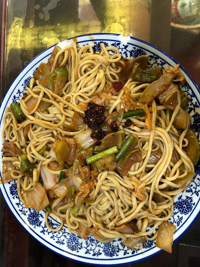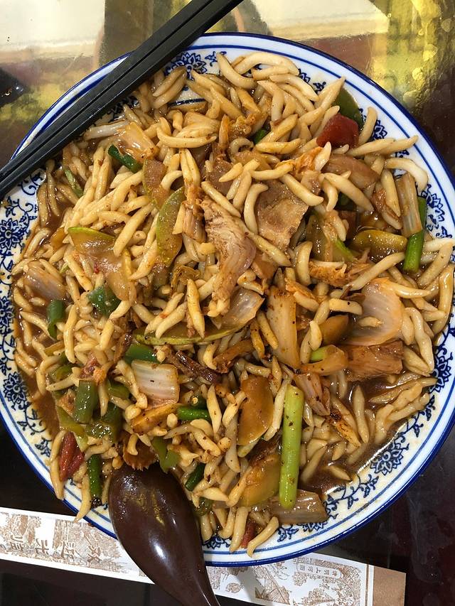 丹霞景区门口的拉面馆, 这个叫牛肉拔鱼子,我比较喜欢吃这个面鱼鱼,我觉得还可以吧