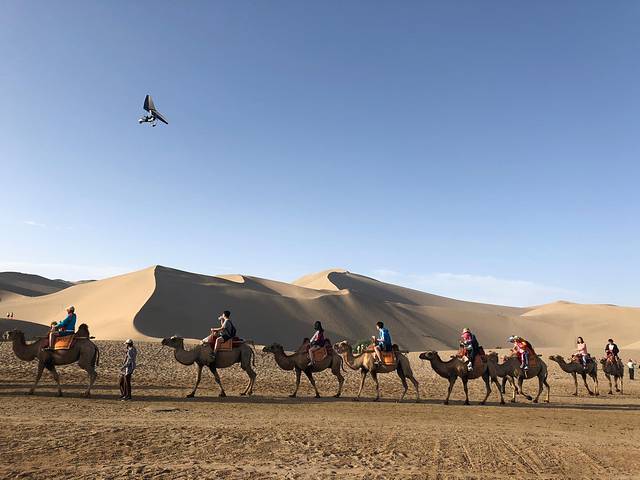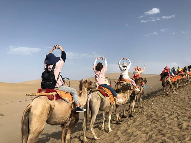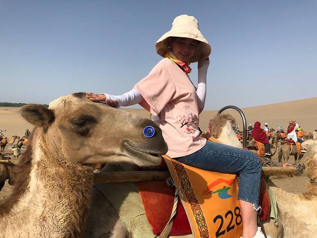 到了敦煌太早,结果太热,基本很少人会大中午的去月牙泉和鸣沙山,所以我们选择先吃饭,从火车站出来坐3路到敦煌夜市站下,在附近找了家饭馆,敦煌的特色应该是驴肉黄面,我们尝了不是很合我们的胃口,吃完在附近找了家咖啡馆,强烈推荐这家饮品店,叫莱昂的慢递杂货铺,里边有好多小东西,还有老板自己做的九色鹿vr手机壳啊,伞啊,包啊之类的,女孩子很喜欢逛这种地方的,瑶瑶给我买了一个九色鹿手机壳我超喜欢。在店里坐到下午五点,我们就打车去了月牙泉景区,进去先买了骆驼票100块钱走个来回,其实坐在骆驼上看看拉着头驼走的那些人的时候心里挺不好受的,那么热的天,我们坐着都嫌热,他们要走骆驼走的那么长的路,也更心疼骆驼,那么热的天还要工作。骑完骆驼快七点了,因为晚上定了沙漠露营,七点要在景区门口接,所以我们没有去月牙泉,先去基地,第二天再去月牙泉(门票是可以用两天的,第一次出来的时候要认证一下脸,第二天刷脸就可以进),到基地之后放了东西。就跟大部队一起去滑沙和骑沙漠摩托去了,还有烧烤和party ,十点多给发了帐篷和睡袋去露营,像回到了小时候,玩的不亦乐乎。夜晚的沙漠星空是我长这么大看到的最美的星空,像极了银河系,感觉离它好近好近,建议你们去了体验一次,不会后悔的,第二天早上坐车到景区门口进去去看月牙泉,然后和小伙伴商量去雅丹魔鬼城,既然来了,不去多遗憾,我们看直达的车有两班,一班早上九点,一班下午两点,早上的赶不上,下午的太晚,然后我们找了一辆去的公交车,谁知道人家是散客拼团,中间经过阳关和玉门关,我们去阳关看了觉得太热太烤的慌就不想去玉门关了,结果司机说不去不行,必须买票,看完了不回来走这条路,所以必须买票进去,我们仨很生气,有强制消费的意思,但能怎么办呢是我们自己之前没了解清楚,没办法买了票,但我们没有下去看,就在车上等他们,到雅丹魔鬼城的时候六七点,景区里边还要做大巴,我们到二号停车点果断换上了沙漠越野车,带我们进入南区玩,一路荒凉,又热又烤,像到了火焰山,总而言之还是很震撼的,那种荒无人烟的寂静,不去是没办法体会的,九点多看了日落,回到敦煌的时候都半夜一点了,找了宾馆果断洗澡睡觉。