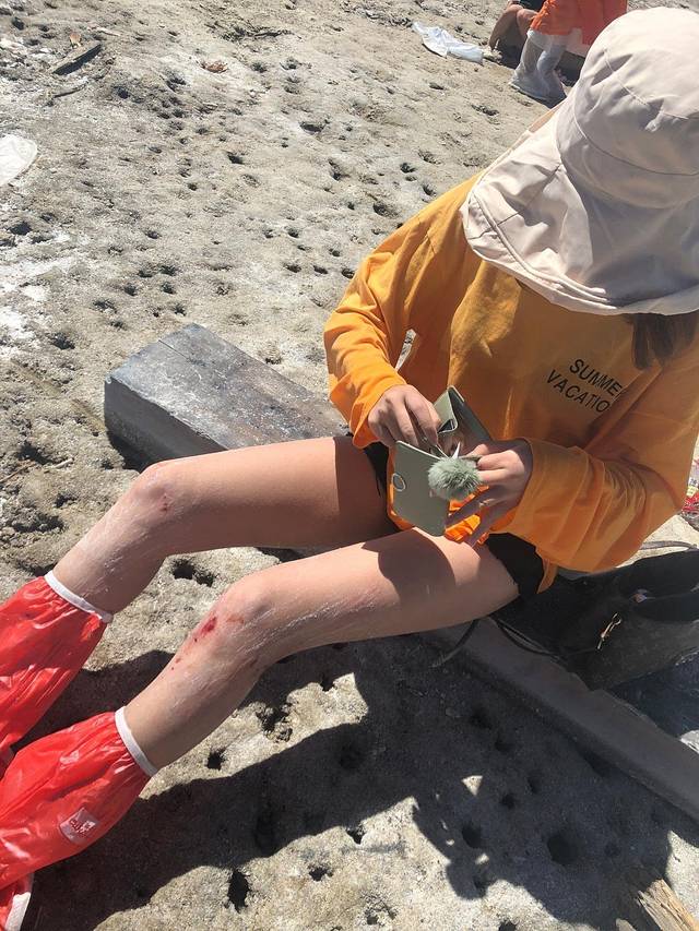跌入溶洞后腿受伤了,一只在不停的流血,腿上身上干了之后全是盐,小伙伴快吓死了