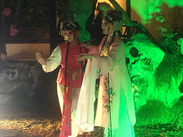 园内的表演倒是还行,只是夜间的指引不明,孩子的脚给滑扭伤,导致后面的昆曲和评弹他们都没看,只有我看了。100元一张票,一家三口三百元。个人觉得值不回票价,特别是晚上最后一场会很表演得很快,也可能是演员都很累了,我们刚到也很累了!