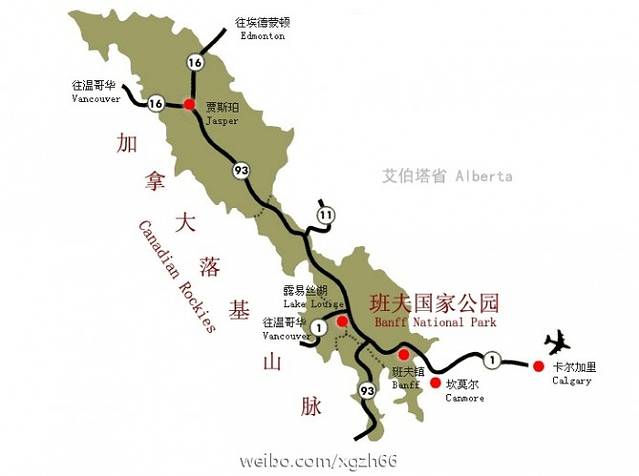 我计划的线路,是贾斯珀进、班夫出,即从北往南走。之所以这么选,是因为班夫国家公园的名气似乎比贾斯珀更大,以为从贾斯珀往班夫走,会有种“倒吃甘蔗”的感觉,越走风景越漂亮。