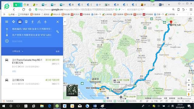 从温哥华到贾斯珀800多公里。一天到达不是不可能,但是那就得一早从温哥华出发,马不停蹄。显然这个方案不可行:途中的停歇地点容易确定——坎卢普斯(Kamloops)。甘露是奥肯纳根湖区的重要城市,有很好的旅游价值,