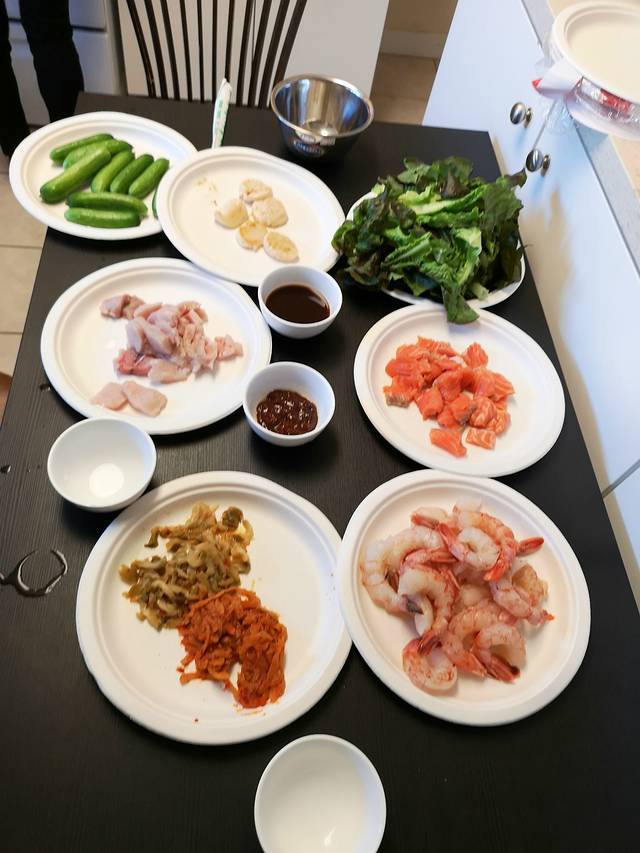 蔬菜新鲜,直接蘸酱,海鲜生猛,当然生吃,经本人验证,放心不会坏肚子。