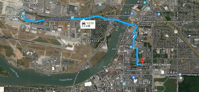 温哥华机场租车门店到入住酒店