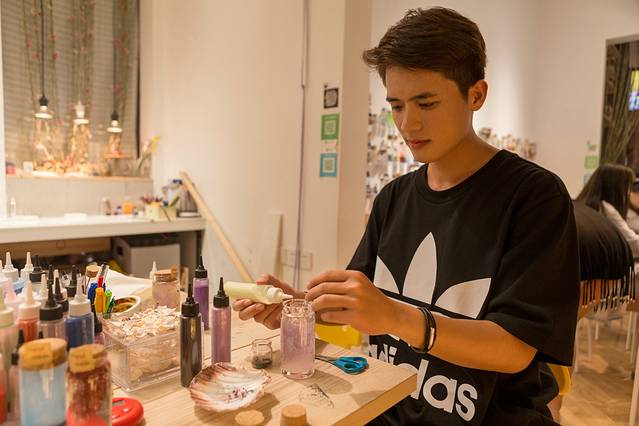 大致在里面逛了一圈,发现艺心瓶大致上分两种。一种是情侣们过来制作的,记录在厦门留下的美好回忆。当然另一种就是我这样的,刚分手不久,去缅怀上一段感情,或者是缅怀一段忘不了的感情。
