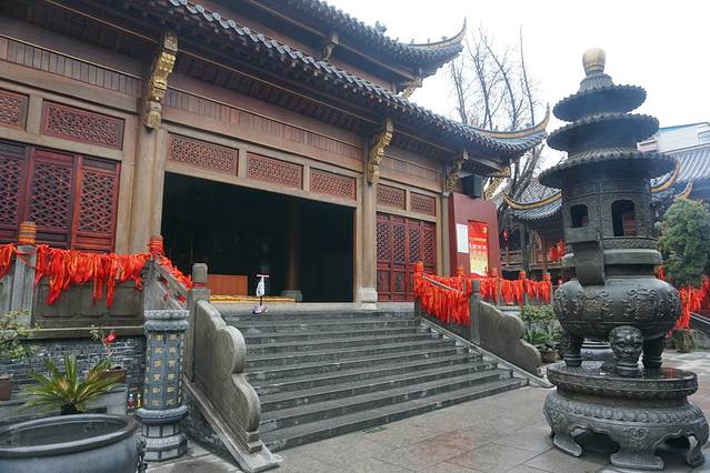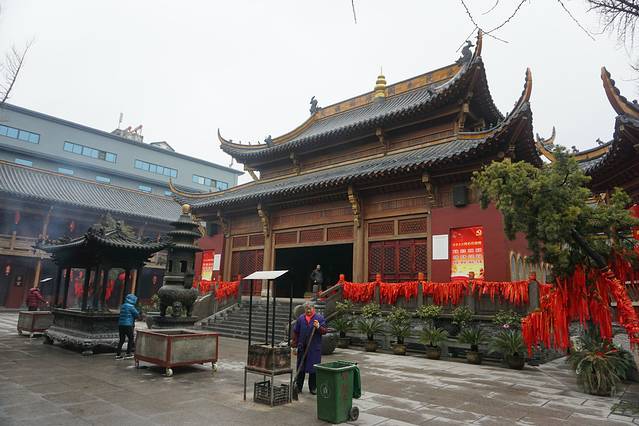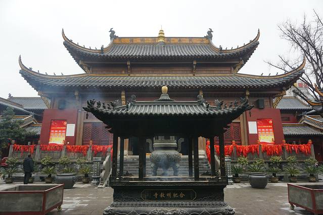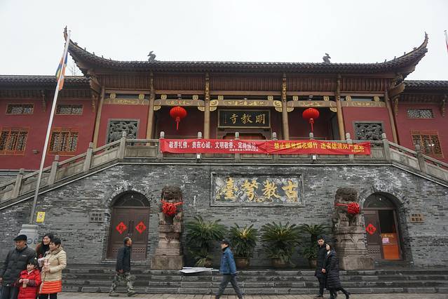 整座寺院建筑在长江岸边的高地上,殿堂巍峨,从十里开外即能见其雄