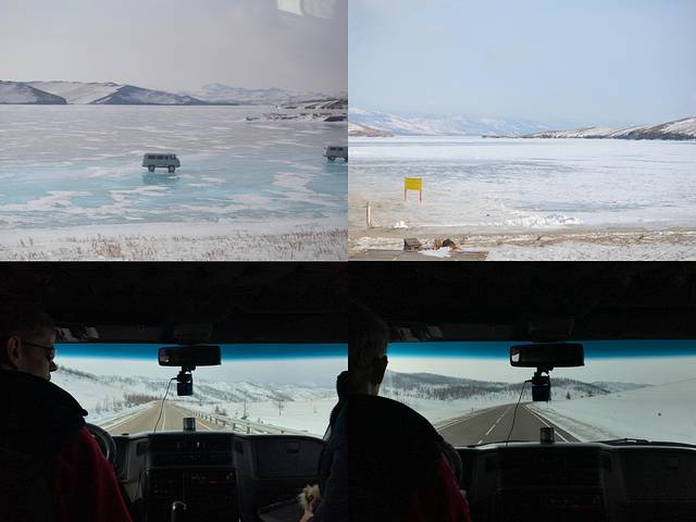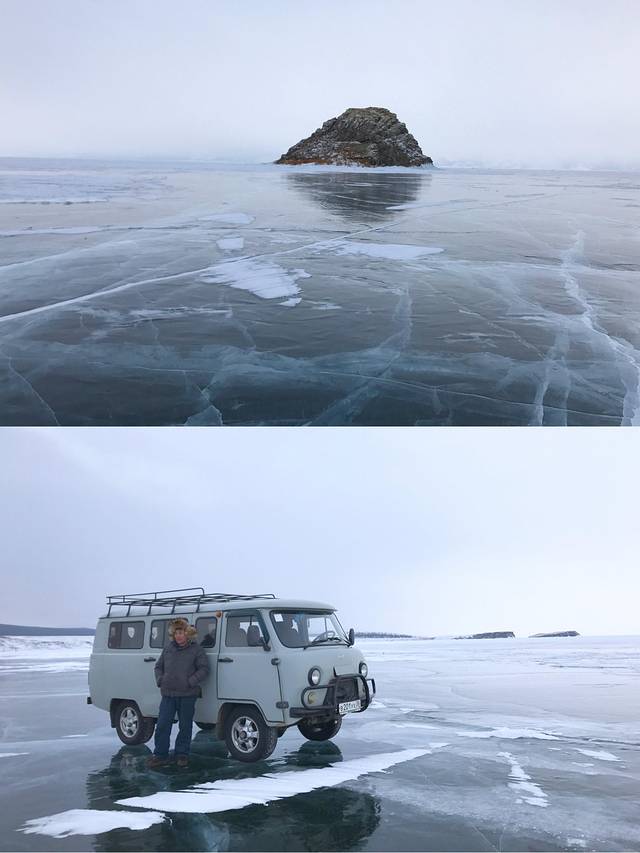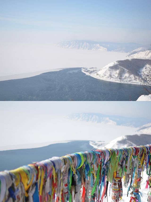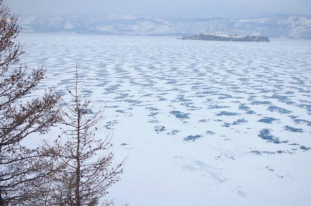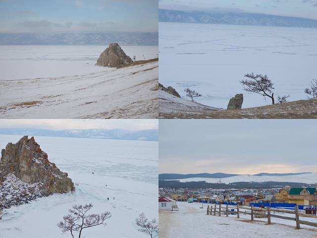 第二站又是到了一个山头,从山上望下去就是冰冻的贝加尔湖了,但是上面还覆盖着雪。其实今天天气不算很冷,周围已经有人开始脱光衣服拍照了~