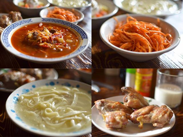 胡日尔村真的是一个特别安静的小村子,路上除了三三两两的游客,几乎很少当地人,最吵的大概就是村子里的狗了吧哈哈~从旅馆去萨满岩的路上,这几只狗一直跟着我们,还一直要抢我们的雪糕吃!
