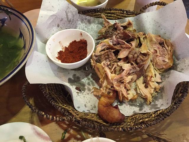 我们点了,丸子汤跟葫芦鸡,还有肉夹馍,事实证明-景区菜都不好吃,这个鸡又十分油腻,不是我的爱