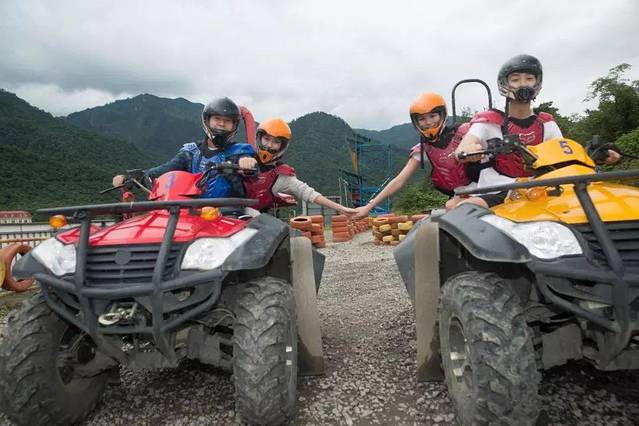 四轮滑草是在滑草场旁边的草坡上。与滑草场特别培育的绿茵草地相比,草坡上长的都是参差不齐的野草。四轮滑草车从山坡上冲下来碾压草丛,有种开坦克的刺激。