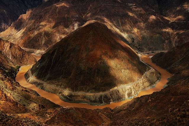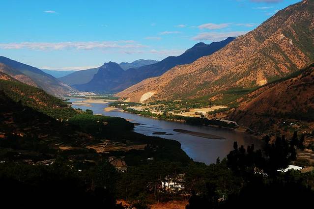 14:20到奔子栏镇,在路边一餐馆吃午饭,饭后继续前行,15:25到金沙江大湾(月亮湾),尽管前几天才来过,我依然同小伙伴一起,兴致勃勃地再次下车观赏这一大湾的壮美之景。