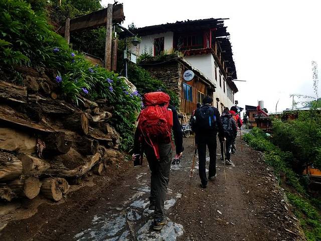 昨晚上开始的小雨,直到早上还在淅淅沥沥地下着,早起收拾完去客栈餐厅吃饭后,仍未见有停歇的意思,领队纳迦罗与我们商议后,决定还是按原计划走尼农大峡谷出山。