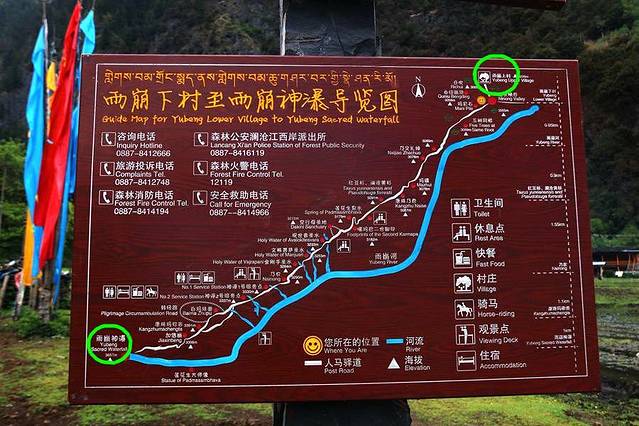 从雨崩上村到神瀑,是要经过雨崩下村的,上村与下村,一上一下,相邻相望,看起来很近,要走到跟前,起码得4、50分钟的时间,所以有的驴友或户外队,为了节省时间和体力,前一晚上就从上村转场至下村,另寻客栈住宿,目的是方便第二天一早就从下村出发。