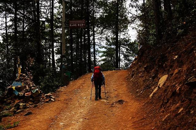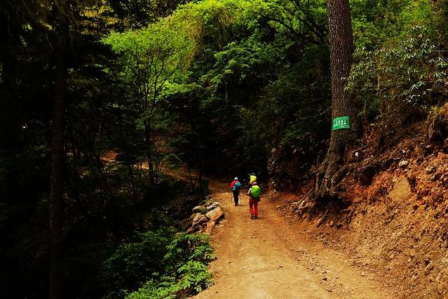 整理好背包,调节好手杖,开始沿一条蜿蜒而上的大土路走起。出发没多久,我们一行的小伙伴们便走散了,大家按照自己的节奏,各走各的了。一路上相遇很多驴友,有男有女,有重装的,也有轻装的,有徒步的,也有骑马的,有三三两两结伴而行的,也有踽踽一人独行的,都是为了一个共同目标,我们邂逅在了这里,相逢何必曾相识。