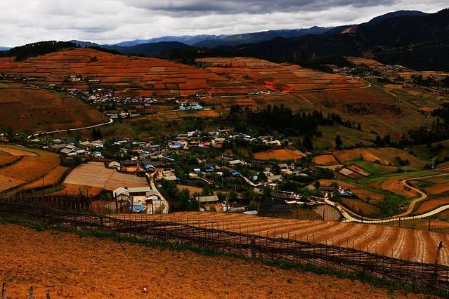 6:30闹铃醒来,从房间窗户望出去,期待中的日照金山没有出现,梅里雪山主峰卡瓦格博是云遮雾绕,于是继续躺下床,一直睡到7点多才起床收拾。