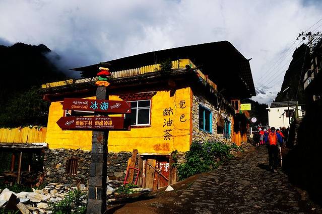 早7:30起床收拾,8:30到客栈餐厅吃了碗酸菜肉丝面,9:00我们一行6人就向着村后远方雪山的方向,准时出发了。