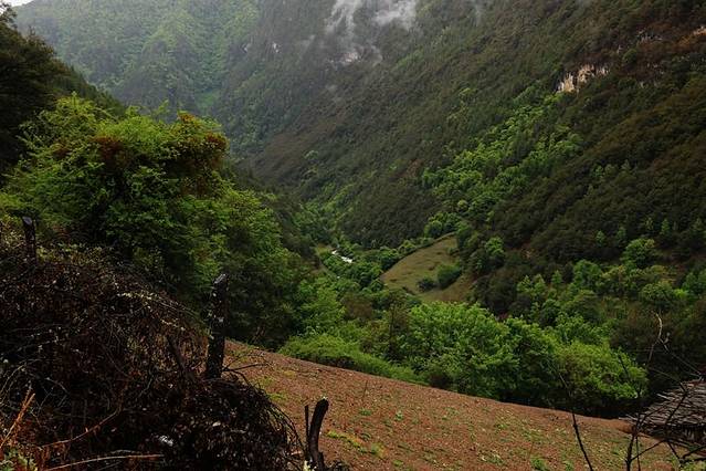 9:00穿上雨披的我们在细雨之中,告别了雨崩村,毅然踏上了通往尼农大峡谷的山路。