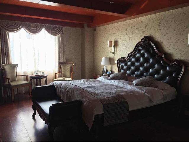 欧式风格建筑,房间很宽敞,室内装修很温馨。酒店有就餐的地方。