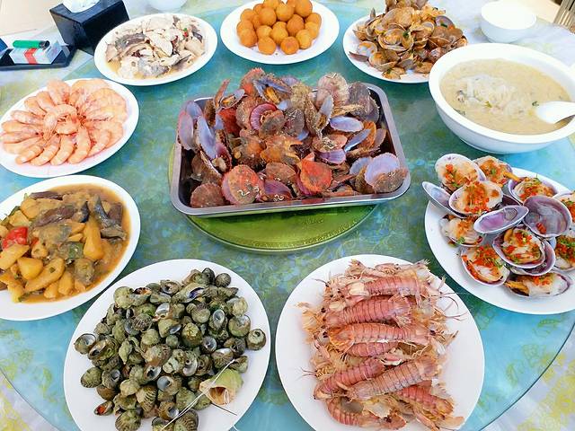 6点,海鲜盛宴,扇贝吃到饱、比拳头还大的海螺、肥美的生蚝、垂涎欲滴的蒸海胆…