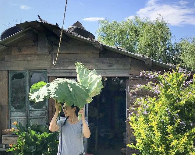 她说农民们习惯了给庄稼施化肥打农药,因为胡萝卜不直不好卖,大蒜不大没人要。而她不做那些让粮食种植的更快,个头长的更大的事情。长在她园子里的植物不受任何干涉,自在的埋没在杂草间,肆意按照自己的方式生长。如果不是她本人,都难以从她的田野里找出需要的食材。