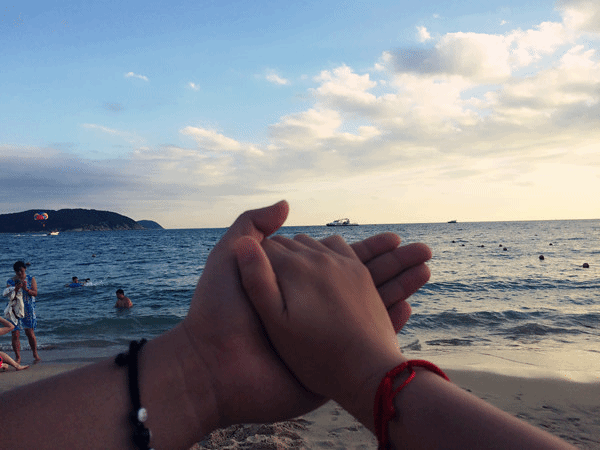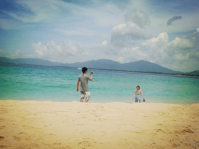 D3 蜈支洲岛 , 三亚 梦回天堂客栈(328RMB/晚)。由于蜈支洲是我一直很向往的地方,于是一大早便退了房,打车直奔了景点边上的梦回天堂客栈,这个客栈吸引我的地方是他家的无敌海景大床房,其实房间设施一般,和普通宾馆无恙,但是吸引人的是阳台外面就是大海,特别美~ 下楼走到海边也就3分钟,超级近,来到这里强烈推荐你们一定要住一回无敌海景大床房,貌似是这家最贵的房型,但是夜晚在漫天星星白云的海边漫步,早上被大海的声音叫醒的感觉真的太爽了。我们放下行李就去了 蜈支洲岛 ,住的地方到 蜈支洲岛 步行5-6分钟左右,很方便。蜈支洲作为如此知名的景点果然名副其实,景色超级美,但是水很深,很咸~但是沙滩沙子相比 亚龙湾 没有 亚龙湾 的细软,因为真的很硌脚,踩起来很疼,各种贝壳,珊瑚,石焦等,可能这才是最真实的沙滩。有意思的地方是海浪特别大,每一个浪打来,都可以清晰的看见海中各式各样的小鱼,很美,虽然沙质没有 亚龙湾 细软,但景色真的美,因为浪很大,玩儿水更有意思。由于我们住的地方边上有小吃街,晚上我们吃饭的地方在大众点评搜的叫增辉,点的158的套餐,很美味。饭后应大勇的要求,我们在客栈后面的海边散步,当晚天气很给力,在大 北京 被雾霾严重笼罩时,我们在 三亚 的夜晚清晰的享受蓝天白 云和 漫天的星星,真的美爆了,再有大勇的陪伴,时不时来个拥抱啥的,真的很浪漫···