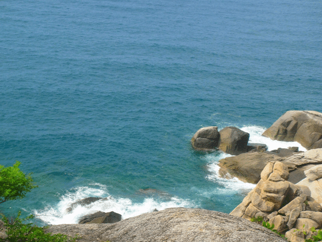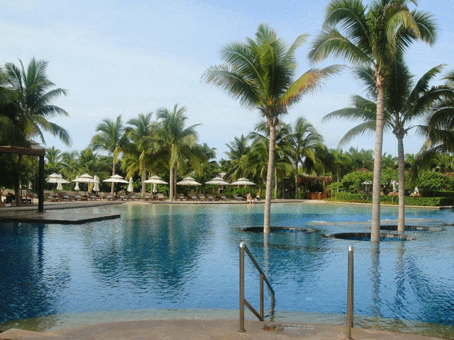 D6 大小洞天 ,南山迎宾馆(RMB648 园林观景大床房/晚)。到 三亚 怎能不到南山寺拜观音呢,但是考虑到景区周围实在没有住的地方,我们便选择了景区内的南山寺迎宾馆,房客可以免景区门票,这点还是比较值的,减去我和大勇的门票,相当于房间3百多,且省了路费,不错的选择。打车到迎宾馆已经是中午,由于我们第二天的飞机,考虑第二天可以在园内游览南山寺,故放下行李,我们便选择先出门去往 大小洞天 ,本来对这个景点没有抱太大希望,但是司机师傅强烈推荐,我们便前去一看,景色果然很美很美,进大门就能看到椰子林和大海,而且里面的餐饮店还不错,我在里面吃的酸辣粉 很正宗,好吃。寿比南山有意思的拍照姿势及礁石,海景很美。值得前去一看。游览结束后,我们乘坐公交车到宾馆路口下车,但是差劲的是,宾馆根本不负责出来接,而因地点偏僻,根本没有出租车经过,我们只好拦了一个小蹦蹦,把我们送进去的,因从路口到迎宾馆还有上千米路程,所以实在不便利。晚饭在迎宾馆里吃的,好的是在吃饭的地方就能看到观音像,很壮观!由于我内心还是非常信仰观音的,所以自始至终没有对观音像进行拍摄,不敢有所亵渎。