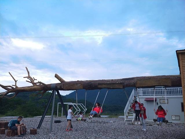 小吃街背后有一些小房子,风车阵,秋千架等。踏着卵石铺就的小路上,有种恍若不是在山间,而是在海边的错觉。