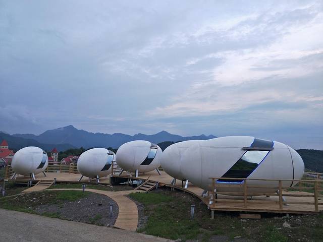只见五颗白色的“蛋”安静的坐落在草地上,窝在西岭二平台的半山腰上,山上是浓浓的乌云笼罩,背靠青山,正对映雪湖。好像真的将有什么玄幻的事物将要腾空出世了一样。