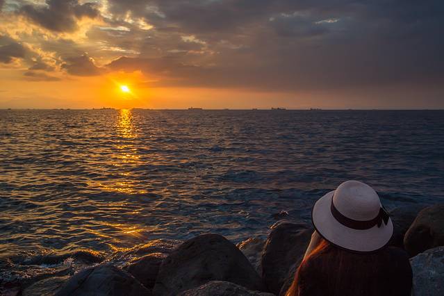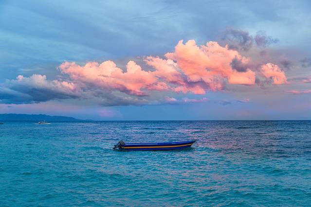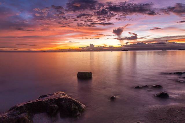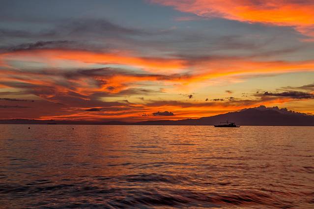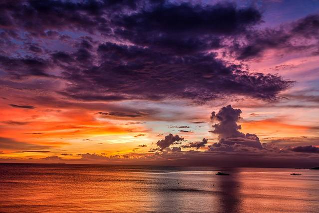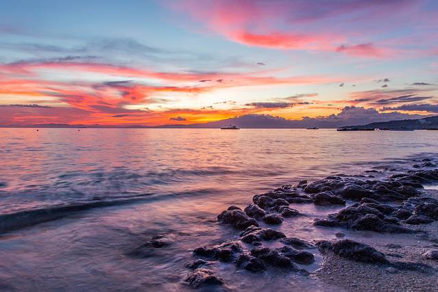锡岛的日落很无敌,想天天看可以选择西面海滩的酒店,我们酒店走到海滩也就10-15米。这里的日落我们称为“粉色炸弹”,它是渐变色,一开始是鸭蛋黄色,过一会变成粉色还夹杂着一些紫色,最后又变成通红色,多种色彩的晚霞。