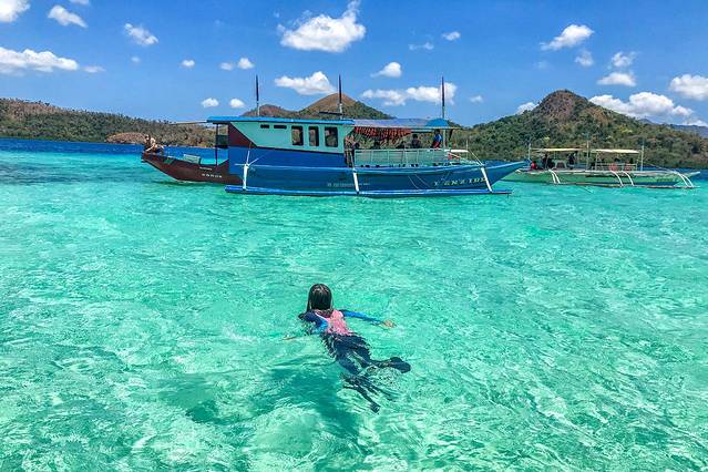 爱妮岛 可以从 科隆 坐船过去,快船4小时(价格贵一些),慢船7-8小时。船票在 科隆 镇上,有专门的小店代售船票机票之类。码头离镇上有点距离,而且打印座位号要去航船公司的办公室,到了码头,需要往回走100米左右,找到办公室,问问周边人就知道了。