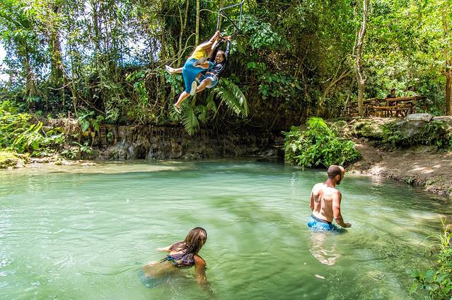 那边有很多景点,百年大榕树鱼疗、牛奶湖瀑布、树藤跳水、十米跳水平台、红树林、大教堂,这些景点都会收取一些门票和停车费,不是很多。骑行摩托车一定要注意防晒,太阳太毒了,景点都在环岛路上,注意看标示,有的远一些,要开进去一段路。