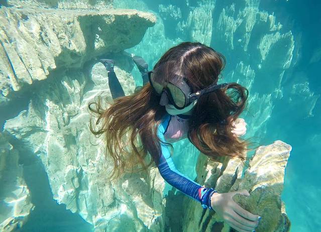 爱妮岛 也有类似 科隆 那种 淡水 湖,水下 石林 是一种特色,很多在湖底潜水的游客。