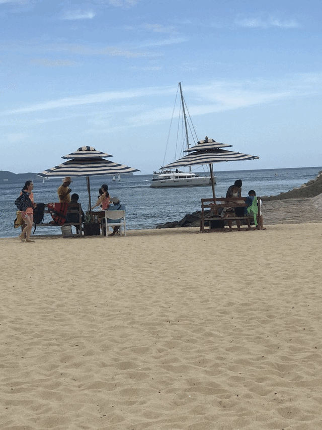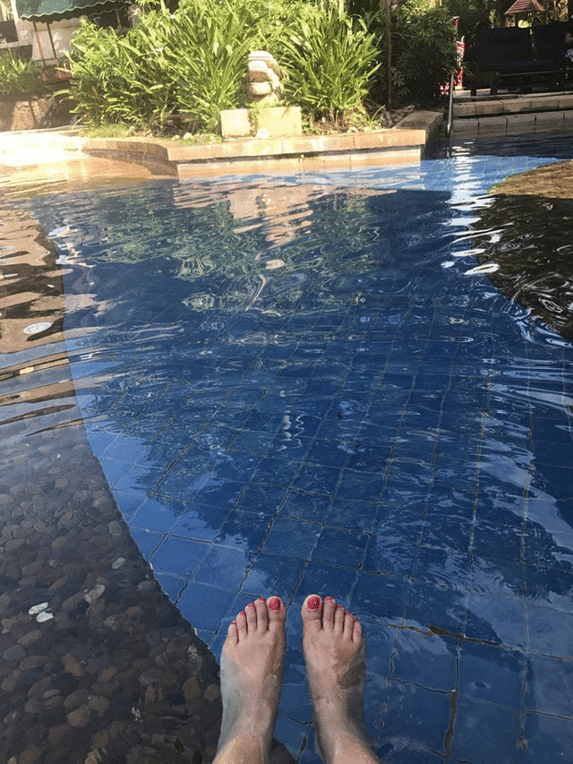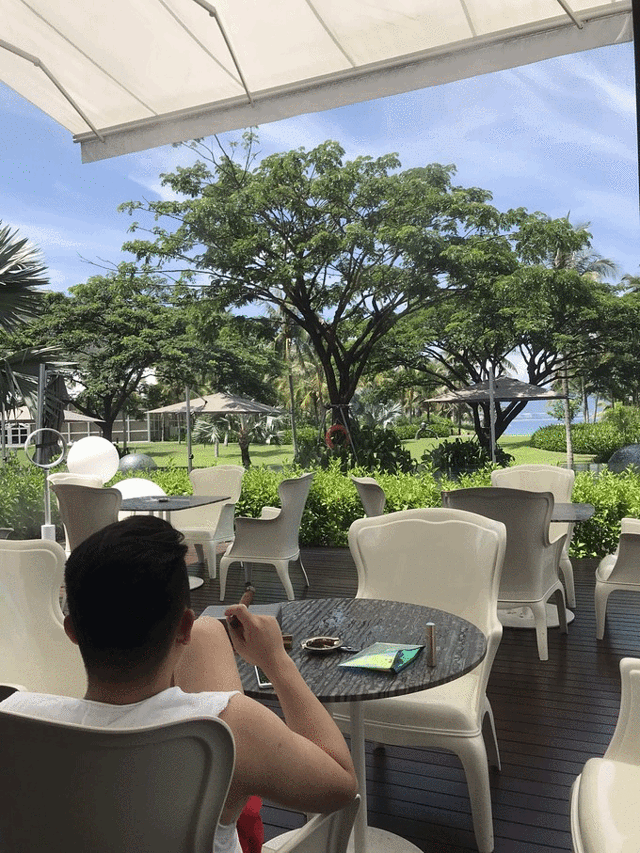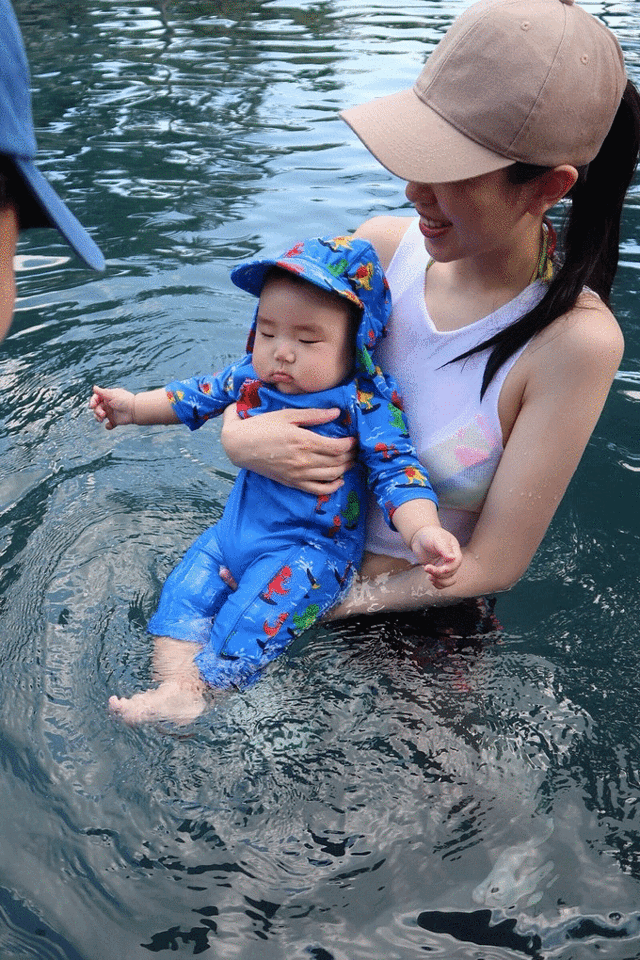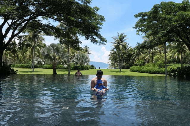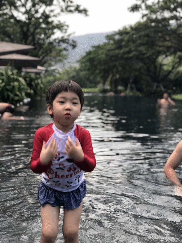 接下来的行程,就是每一天都在酒店呆着,每、一、天。我儿子睡到七八点钟,下楼吃早饭。会在餐厅碰见阿姨或者我婆婆或者我姐姐,他们谁吃完都会帮我照顾一会小虎,但其实我自己也可以。然后换泳装,全家下水。小虎玩一个小时左右就困了,阿姨带他回房间睡觉。我们留下来继续游泳,就是游泳,第一天因为我游的太投入,咯叽窝抽筋了……
