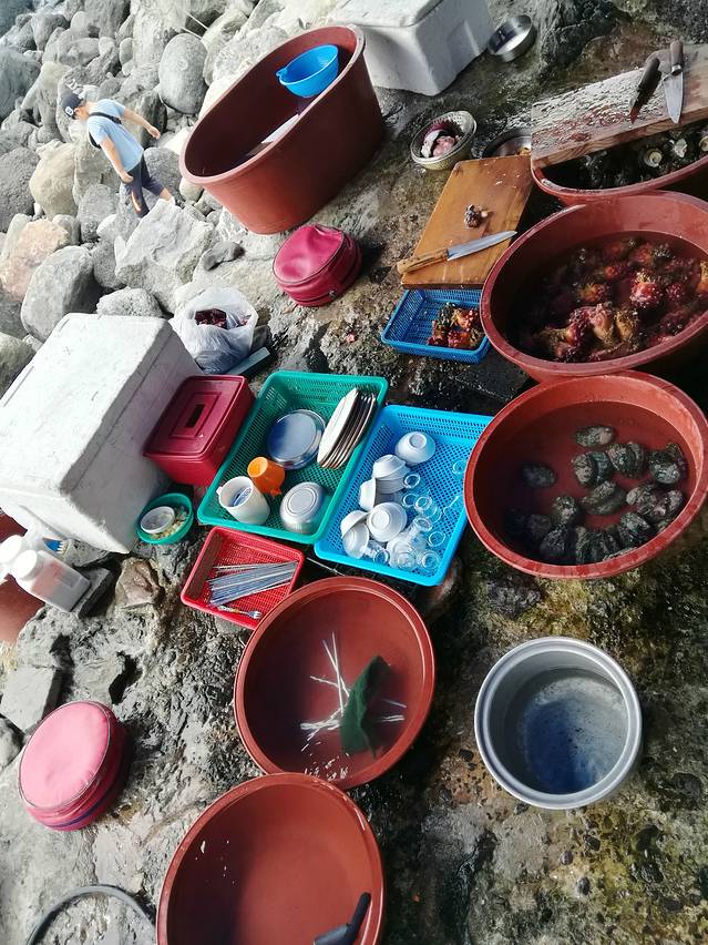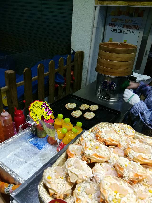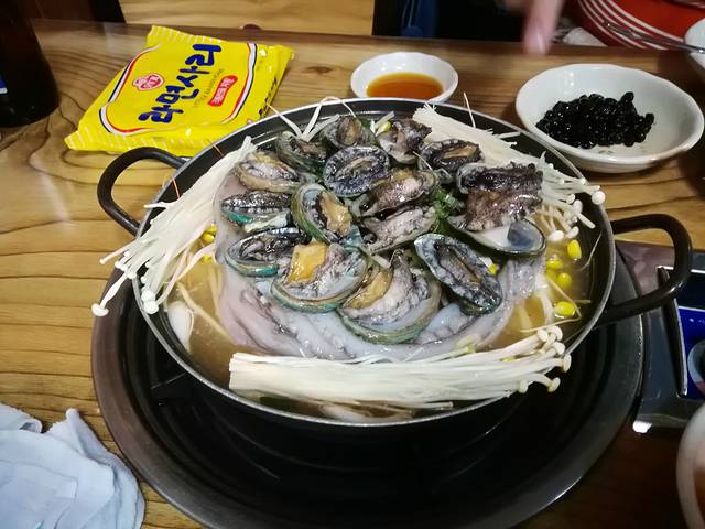 海女当日打捞出来的海鲜,按份卖,1.5万/韩元一份。