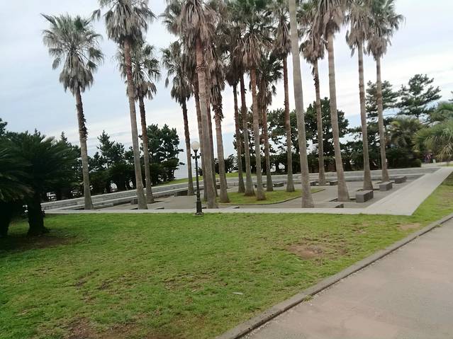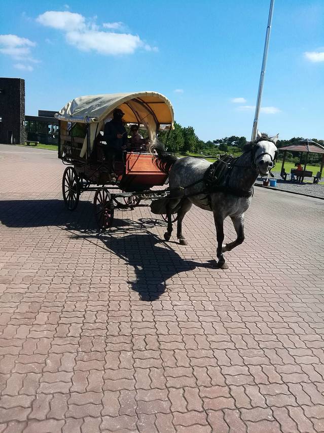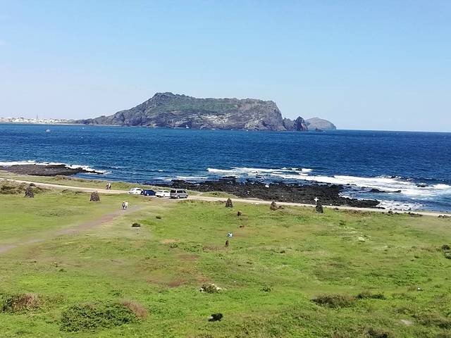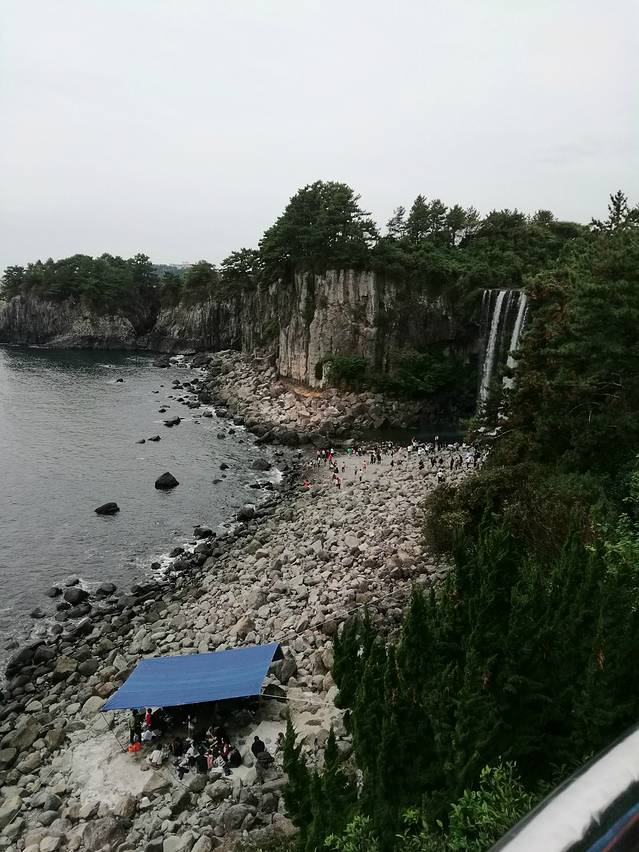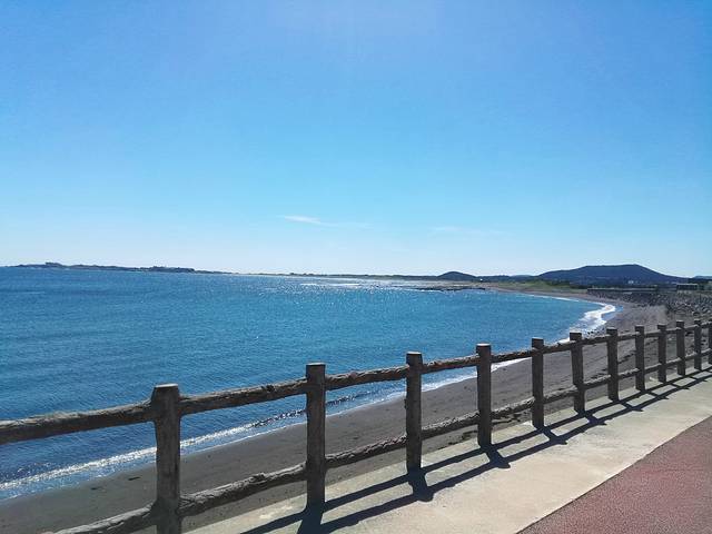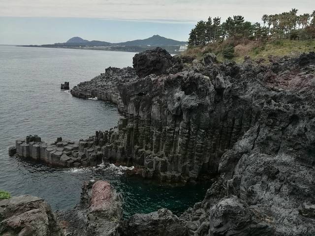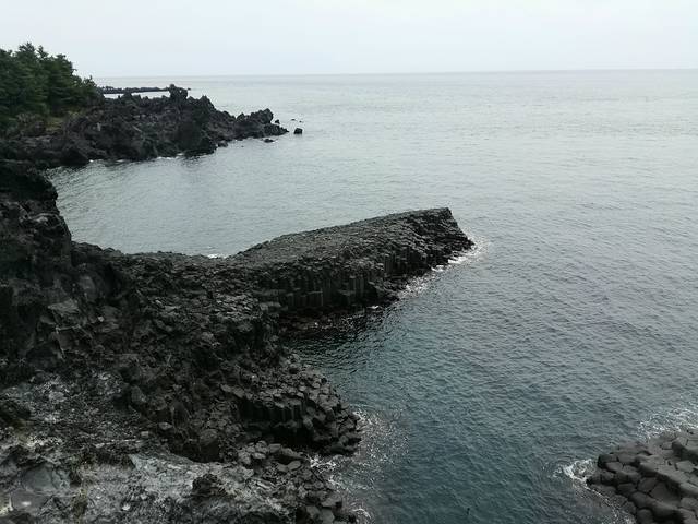 正房瀑布原路出来,在徐福公园斜对面座600路(机场方向)去柱状节理带(济州国际会展中心ICCJ)