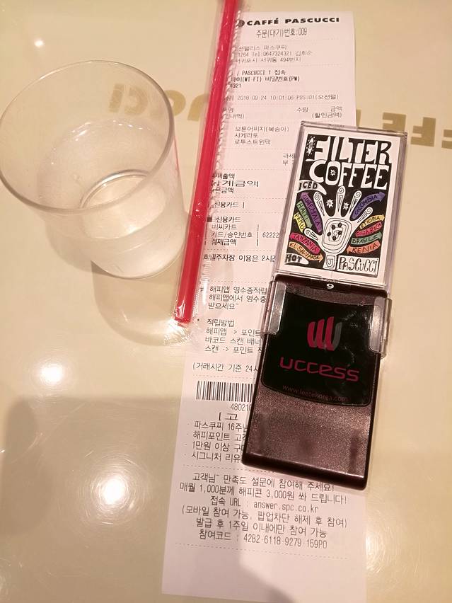 机场超市(超市在1号口)买了点吃喝并充了Tmoney卡后,从5号出口出机场右手边就是600路始发站。行李扔大巴下面后出发,把新庆南路的韩语给师傅看,比划了2人,师傅按好价格就可以刷卡了。PS:Tmoney卡是在韩国驻上海旅游发展局免费领取的空卡),2人可使用1张卡。G25,711超市均可充值,卡内余额可在直营G25买东西用完。