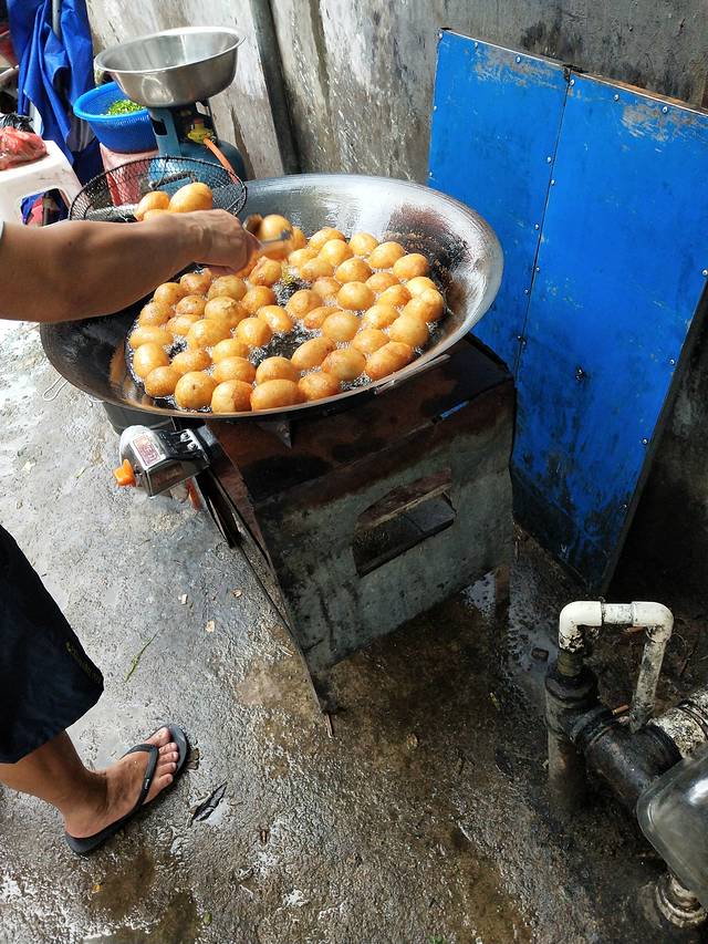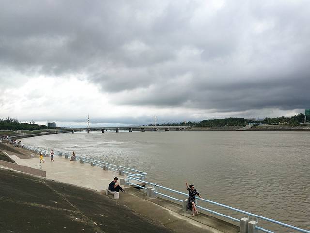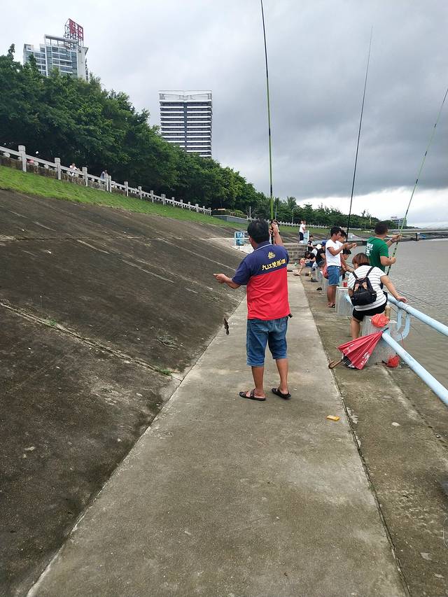 小区外面好像有早市,一大早好吵,9点多出门在小区外面街上买了早餐,回到小区发现小区绿化真的是杠杠的,当然雨季蚊虫也较多,还是要注意一下的。吃完早餐,走过小区别墅区小路直接就到海边了。也许是雨后,沙子有点粗,有不少工人在整理打扫,向右就是香水湾公园,玩了会就回公寓洗澡休息了。中午退房后坐朋友车来到陵水,看到小区门口也是有公交到陵水的。到陵水肯定要吃下著名的陵水酸粉,机械厂小区附近的路上看到一些卖小吃的,也买来尝下,刚出锅的煎堆超级好吃。酸粉好浓但不腻,各种配料,小鱼干,鱿鱼干等,吃的挺有惊喜的。吃完散步回滨河路路上,看到老旧的小区后面是高耸的小区,感官差好大。回到河边看到好多人在钓鱼,就跑过去看人钓鱼。有的人不到五分钟就上来一只,有的人半天没有动静,在河边吹着风,安静地坐在钓鱼人旁边,冒充跟他们一起的,呵呵。