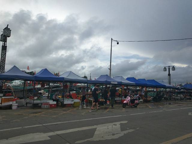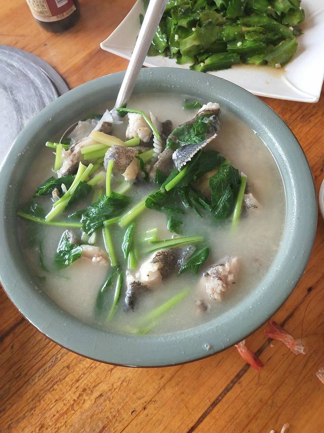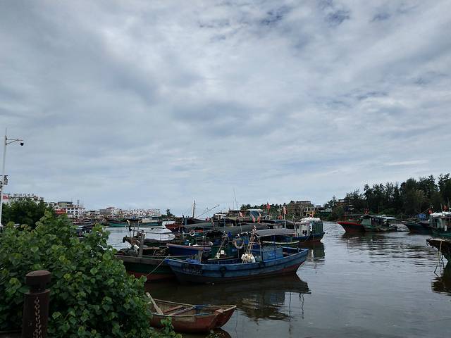酒店出来马路对面坐13路公交到潭门镇下,好像是半个小时还是一个小时一班。在水果店门口买了个椰子边喝边等,椰子喝完,让阿姨切开时,闲聊了几句,说只是一辆车来回跑,不是很好等,建议我们坐三轮,20元左右。然后我们就坐三轮到潭门镇了,到路口被河边的一艘艘小舢板震惊了,第一次看到这么多船,之前有听过一些潭门故事,知道这里的人大多靠海为生,居船而栖,沿着河边走,近距离的观摩着这些船儿,特别想登船体验一下。想着这里如果有这种(前一天晚上过来住,凌晨跟渔民一起出海,上午归来将捕回的海产品给店家加工,中午吃一顿自己捕回的劳动果实,然后回去)的旅游线路,又能体验渔民的生活,又有劳动,又能吃上自己的战利品,多好啊。就应该有这样那样不同的生活体验。不远处有很多村民在买工艺品,有人推销砗磲,请大家尽量不要买,砗磲生长缓慢,属国家保护野生动物。再向前走,看到有小孩推着拖车,大人们将拖车上整箱整箱的饮料,水等运到船上,估计计划着要出海了。再往前走一点远,就看到海鲜市场了,不少人开车过来这里挑选,我们在这里买了一斤虾25元,一条石斑鱼,一斤半60元,然后到对面酒楼加工,加工是按斤算的,一斤15元。又点了一个叫四角豆的野菜,好好吃,因为鱼虾都超新鲜的,鱼汤超级清甜,鱼肉非常嫩,超好吃,超满足。中间有个泳裤高个黑瘦帅哥,提了条鱼来到店家加工,估计刚从河里捕回的吧,坐在店门口吃了好久,我们走时还在那,感觉超会生活的人。