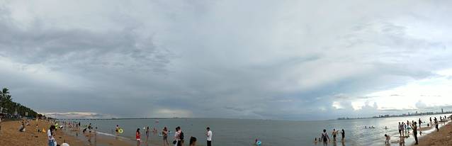 5点多雨停了,出门坐35/40路公交到假日海滩,感觉变干净了很多,蛮多游客的,差不多是这次旅游的所有景点中人最多的一次,海不远处好像在填岛,估计在建什么吧。走了一圈回来,看到有公司在做团建,哈哈,围观了一下,接着沿着海边走了。走到8点多就坐35公交回到海垦路,在香樟风情街逛了下吃了饭,在附近买了点莲雾,超级便宜,6元一斤(机场免税店卖39.9元一斤)。然后回酒店休息了。