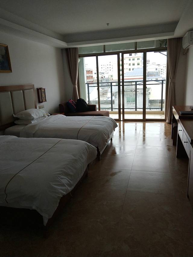 昨晚好像台风过,今天一天也是雨,就以休息为主,早上出门吃了个早餐又回酒店洗衣服休息了。中午退房后就去附近一家店吃了午餐。吃完就驱车前往亚龙湾了。个人建议,如果在亚龙湾住的话,还是多花点钱住酒店吧,不要住公寓了。我们选的是翡翠小区,友家旅馆豪华大床套房,房间是很大,但是卫生还是差了点的,下着雨,也懒得折腾了。因为一直下雨就没有出门,就在房间里面洗衣服,休息。原本计划去海棠湾接朋友时顺便去海棠湾玩下的,雨太大就没去,直接去三亚学院会朋友了。
