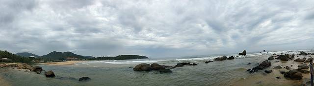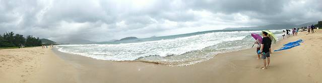 下午2点30后去文昌汽车站,准备去月亮湾。看攻略说一个小时到,3点05分的车,4点30分才到,车上暴雨,阴天,晴天,暴雨不停的轮回,本想去完月亮湾,再去铜鼓岭的,可是最后一班回市区的车5点30的,就在月亮湾玩了一个小时。下车的时候,还在下雨,走到海边就出太阳了,老天太眷顾我们了吧,也许是比较偏,没有过度开发,没有什么人,沙好细啊,水也很干净,感觉承包了这片沙滩哦。只是周边都被新开发的小区围住了,回去时被雅居乐小区弄迷路了,吓的怕赶不上最后班车,谢天谢地,出小区门口时,眼看小巴要走,在马路对面狂追,赶上了,上车后,外面大暴雨了,超兴奋。