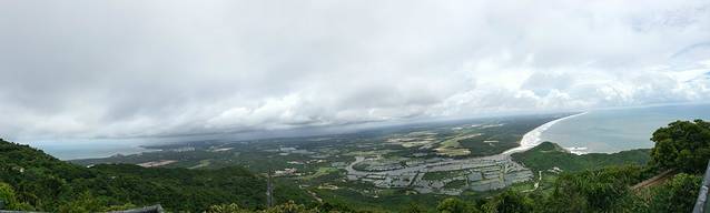 9点起十点退房,坐公交到汽车站,把行李寄存在文昌汽车站,买票去铜鼓岭了,不得不说,感觉这边的大巴不赚钱的,8元的票硬是坐了一个小时。到了龙楼镇后,坐当地三轮车20元,到铜鼓岭。一路上看到好多椰树,想着来到这边到处都是椰林,没必要去东郊椰林了吧。铜鼓岭是不要门票的,但是有旅游车上去,35来回,强烈建议不要走路,坐车,不然累惨。坐车吹着山风超爽的,山路较湾,时不时神龙摆尾一下,呵呵。到山顶后,看到有士兵在洗碗,因为军事驻地,有些地方是不让拍照的,沿着路线爬山就好,一路风景不错。