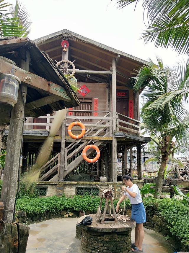 9点起10点出门,酒店门口左走第一个路口看见一家老店,就进去点了两份后安粉,蛮正的,味道也不错,推荐。吃的过程中,看到很多本地人也过来吃,感觉自己选对了。吃完又来到玉带湾海边玩玩,晚上太黑没怎么看到美景,白天再过来看看,白天也是很少人。这边的沙子有点粗,沙滩边有点脏,估计市淡季吧。海边玩了一会,就上酒吧上面看看,这里白天真的好适合拍照,但是很搞笑,那么多有特色的东西没有吸引到我们,倒是那个打水井玩了好久。玩累了,就回酒店休息了会,然后退房出发去潭门镇了。