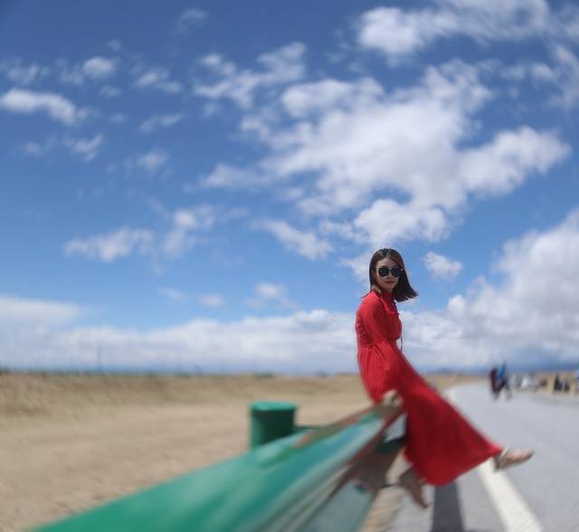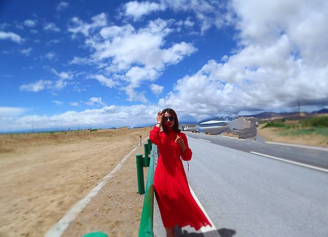 不知走了多久,途中还堵车,到了德令哈大柴旦这边就晴天了。空气非常好,下车又是一阵猛拍。还有公路照骗哈哈哈,不过很危险呢!路的对面是什么湖,不晓得。