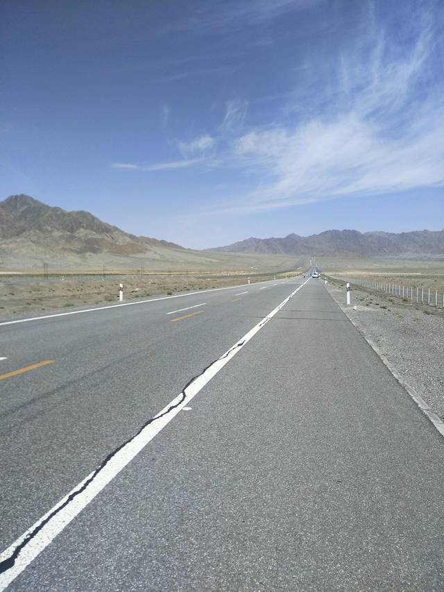 离开德令哈,下一站:鸣沙山。我们的中巴在柴达木盆地一路行驶,笔直的路一眼望不到尽头。这就是天路吗?