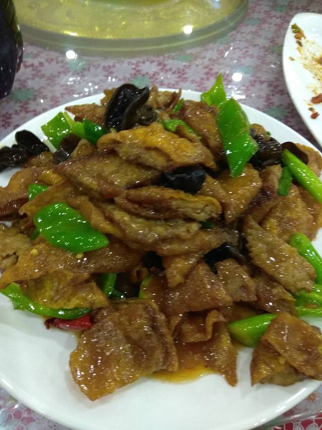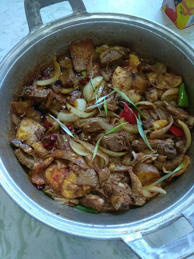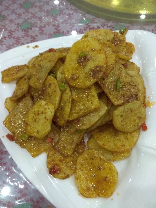 看完丹霞地貌的日落,下山出景区已经晚上9点多了。住宿在景区附近的七彩小镇。来到网上推荐的饭店吃的,好吃不贵。