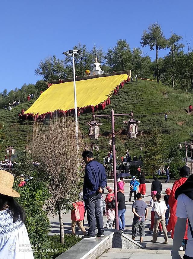 机缘难得,我们赶上一年一次的晒佛。场面虔诚而壮观。晒佛就是晒巨型的堆绣佛像画,这也是塔尔寺的三绝之一。
