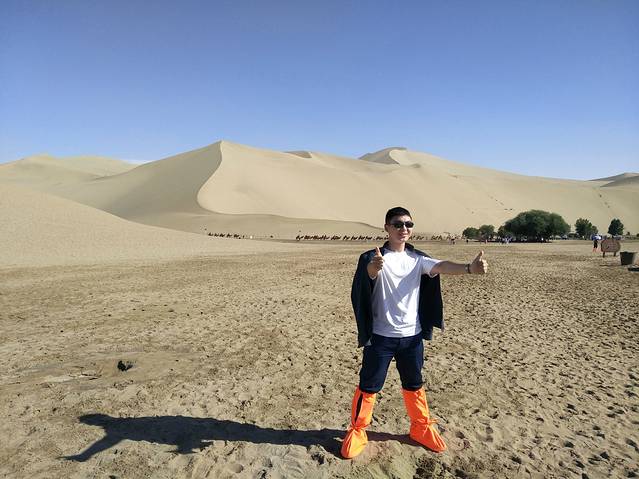 下午3点多到达鸣沙山。鸣沙山光照太强了,建议4点以后游玩。